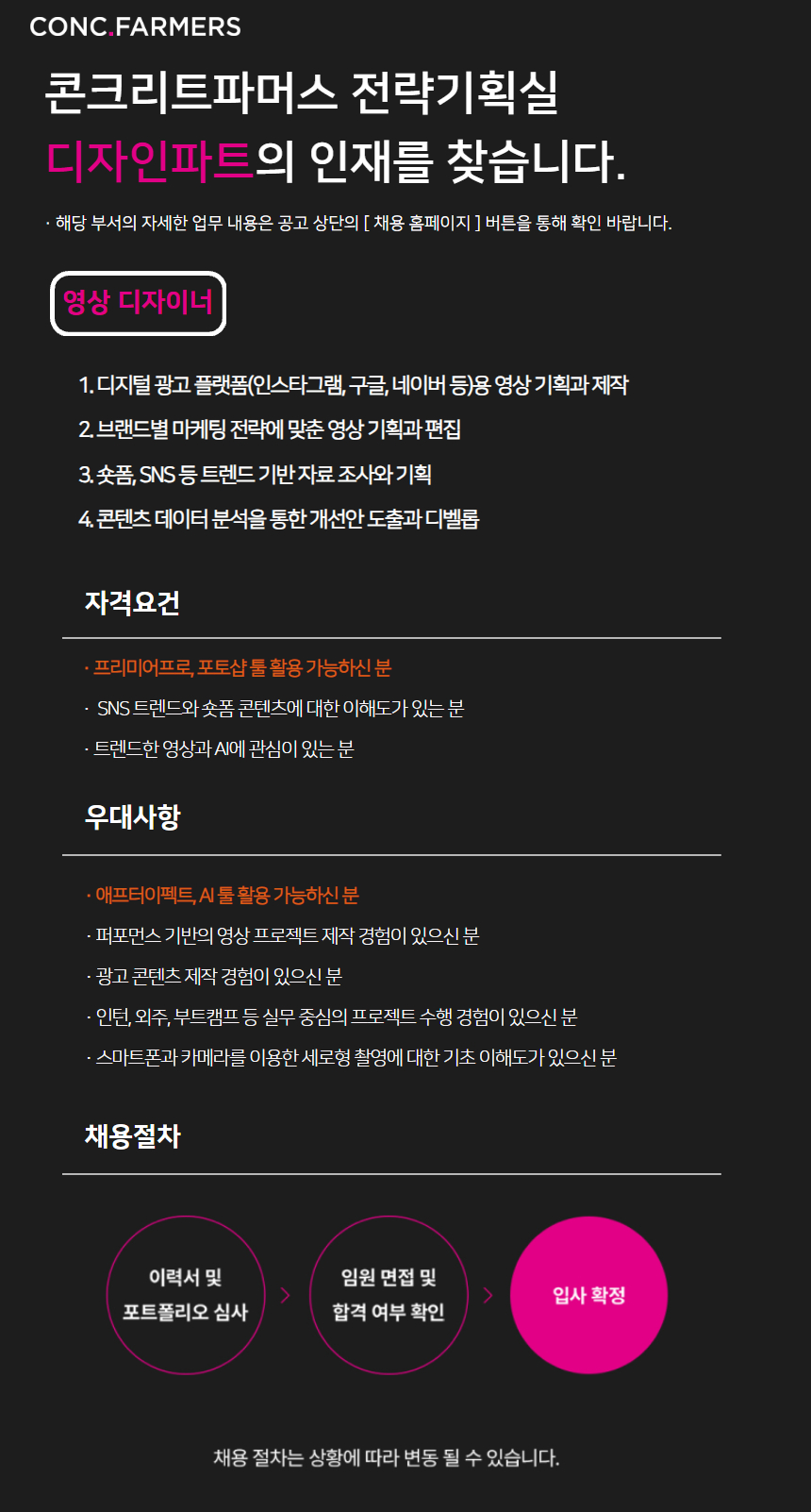 [CCFM] 전략기획실 숏폼, AI 영상 디자이너 모집 (신입/경력)