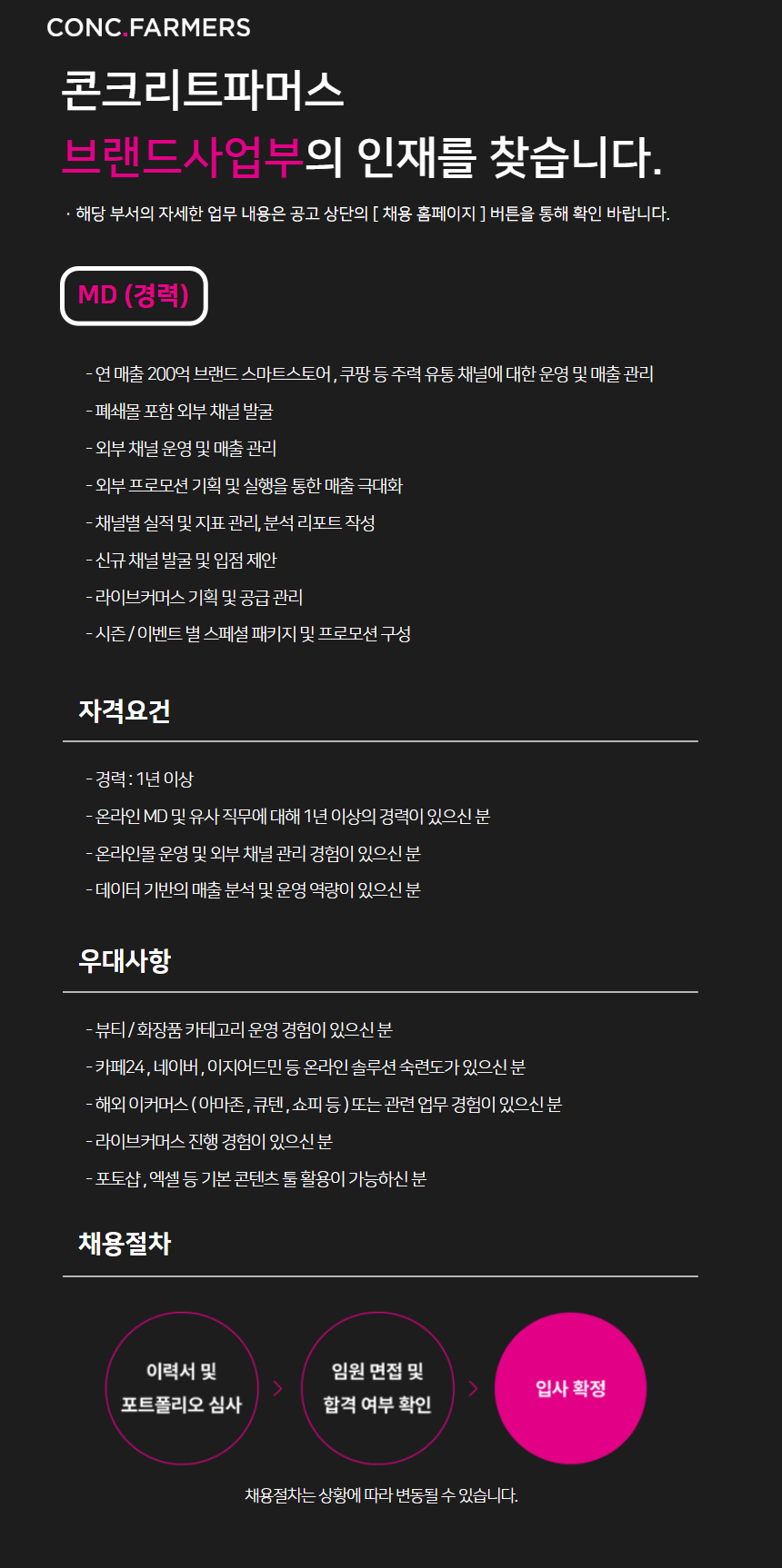 [CCFM] 브랜드사업부 MD 채용(경력)